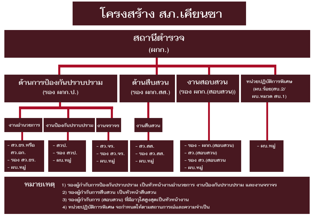มีรองผู้กำกับการสืบสวนเป็นหัวหน้างาน มีหน้าที่รับผิดชอบเกี่ยวกับการวางแผนอำนวยการ สั่งการ ควบคุม กำกับ ดูแล ตรวจสอบ ติดตาม และประเมินผลตลอดจนการปฏิบัติงานในด้านการสืบสวนที่เกี่ยวกับคดีอาญาที่เกิดขึ้น รวมทั้งงานอื่น ๆ ที่มีลักษณะเกี่ยวข้องหรือเป็นส่วนประกอบของงานนี้ในเขตพื้นที่ของสถานีตำรวจ เพื่อแสวงหาพยานหลักฐานและผู้กระทำความผิดอันเป็นการอำนวยความยุติธรรมให้แก่ประชาชน ในการสืบสวนคดีอาญาให้เกิดประสิทธิภาพสูงสุด โดยจำแนกออกเป็นงานต่างๆ