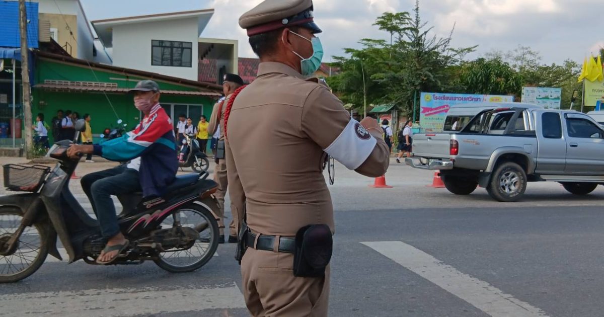 ร ต.อ.อำพน ศรีนวล รอง สวป.สภ.เคียนซา หน.จราจร ,อส จร ว.4 จัดการและอำนวยความสะดวกด้านจราจร บริเวณหน้าโรงเรียนเคียนซาพิทยาคม/เยาวเรศวิทยา