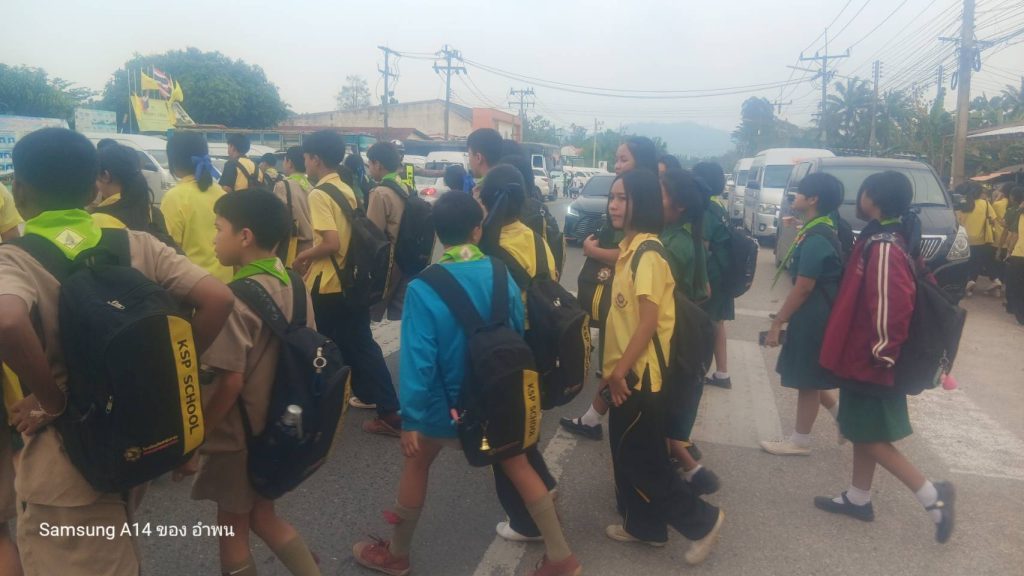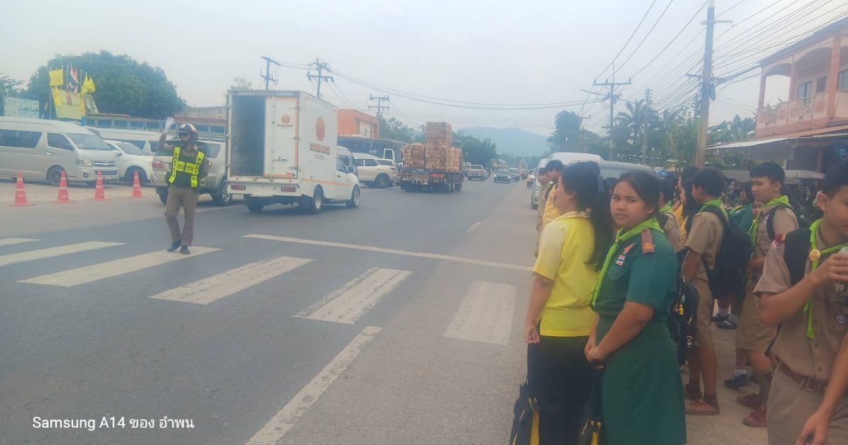 การปฎิบัติ การจราจรคล่องตัว ไม่มีรถติดขัด บริเวณหน้าโรงเรียน