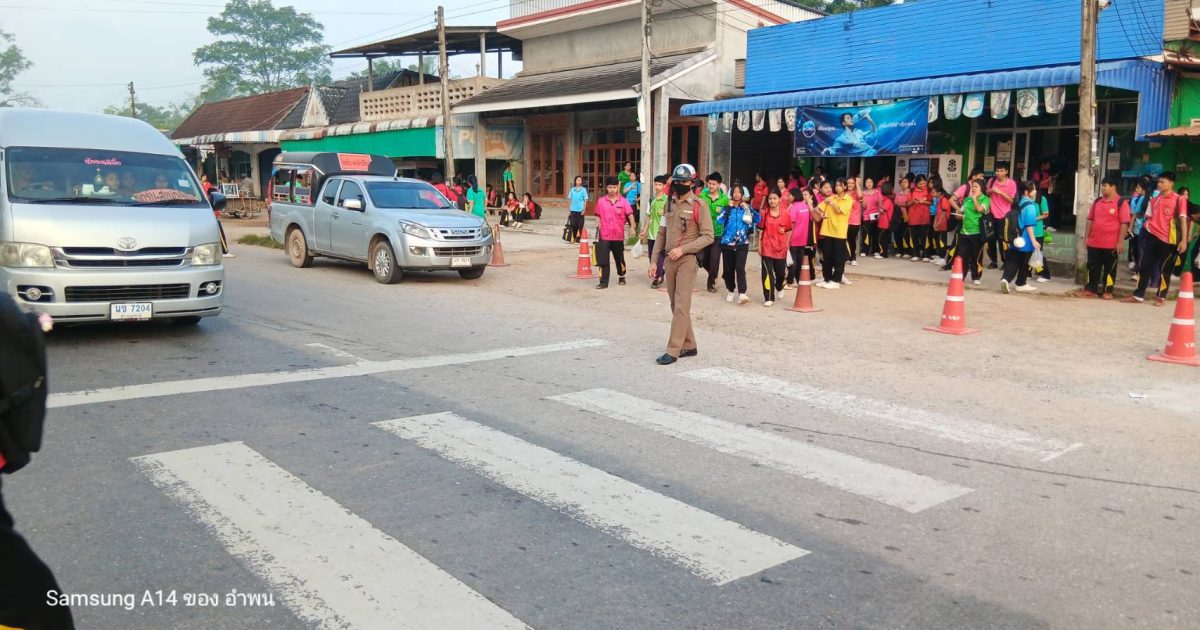 การปฎิบัติ การจราจรคล่องตัว ไม่มีรถติดขัด บริเวณหน้าโรงเรียน