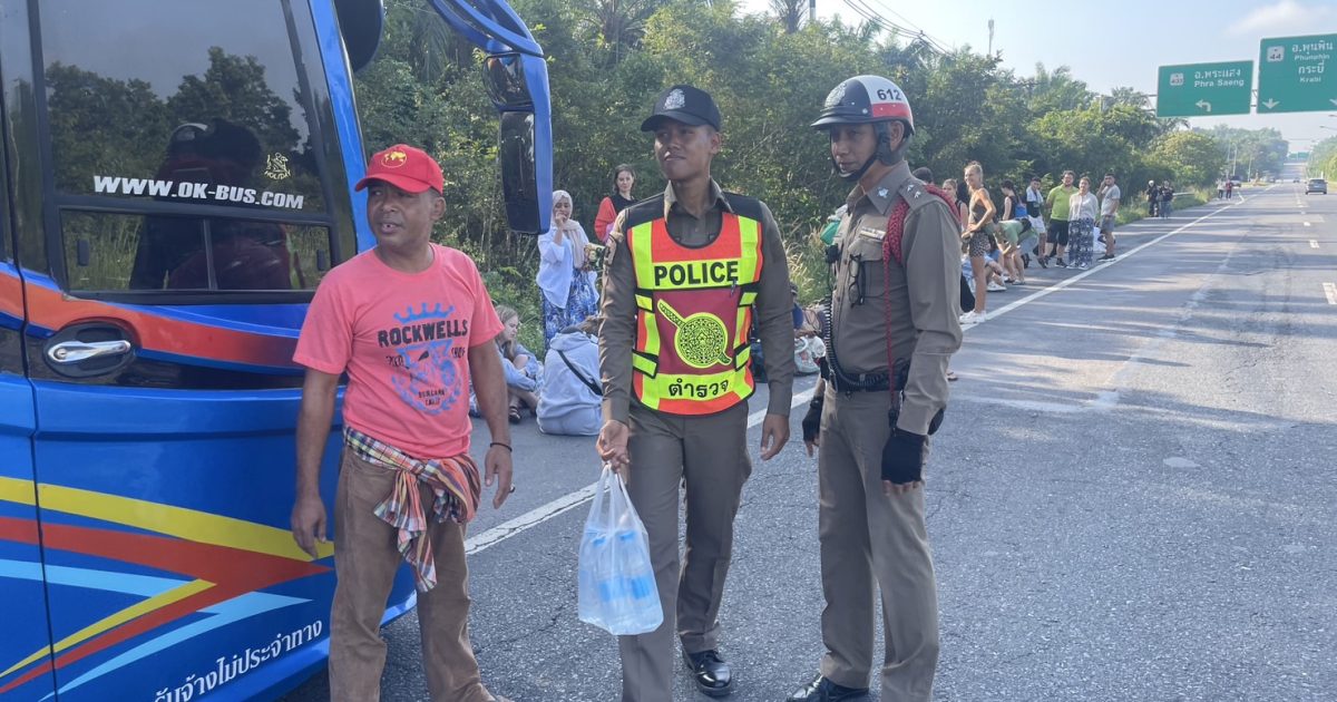 อำนวยความสะดวกการจราจร ป้องกันอุบัติเหตุ กรณีรถนำเที่ยวชาวต่างชาติ เสียไม่สามารถเดินทางต่อไปได้ จอดรอสับเปลี่ยนรถ - ถนน 44 ม.7 ต.เคียนซา อ.เคียนซา จ.สุราษฎร์ธานี