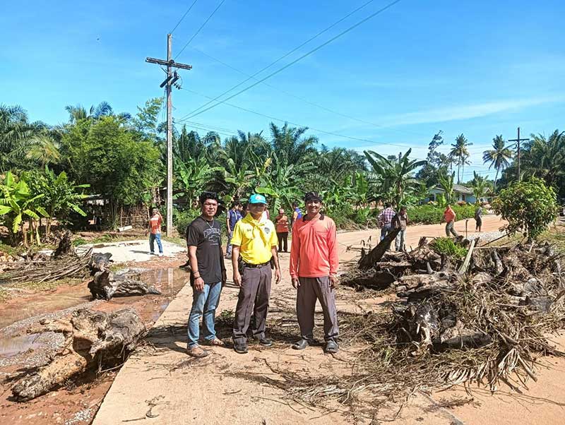 24 เมษายน 2568 เวลา 11.15 น. ภายใต้การอำนวยการของ พ.ต.อ.อานุภาพ จันดิถวงค์ ผกก.สภ.เคียนซา ให้ พ.ต.ท.อนุชิต มีพรมแก้ว รอง ผกก.ป.สภ.เคียนซา พร้อมชุด ชมส. ร่วม นายอำเภอเคียนซา – จนท.ปภ. – นายก อยต.พ่วงพรมคร – ปลัด อบต.พ่วงพรมคร จนท.ปกครอง ร่วมออกตรวจสอบและดำเนินการจิตอาสา ออกตรวจ ตรวจเยี่ยม พบปะพูดคุยสอบถามปัญหาเหตุน้ำท่วมในพื้นที่รับผิดชอบ ม.2 (ซอยบ้านบ่อถ่าน) ม.9 (บ้านคลองศิลา) ม.7 (บ้านสองพี่น้อง) และ ม.11 (บ้านห้วยลึก) ซึ่งตอนนี้น้ำได้ลดระดับบลงเรื่อยๆ