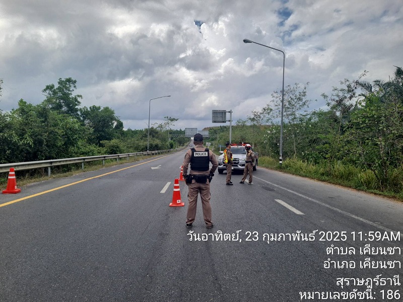 23 ก.พ.2568 เวลา 11.20-12.30 น. ร.ต.อ.ยศ คงพยัคฆ์ รอง สวป. สภ.เคียนซา ปฏิบัติหน้าที่ร้อยเวรป้องกันปราบปราม,สายตรวจบ้านเสด็จ,สายตรวจรถยนต์ และสายตรวจจราจร ว.4 ว.43 แยกแสงตะวันวงค์ ถนนสาย 44 (ฝั่งขาเข้าสุราษฎร์ธานี) ต.เคียนซา อ.เคียนซา จ.สฎ.