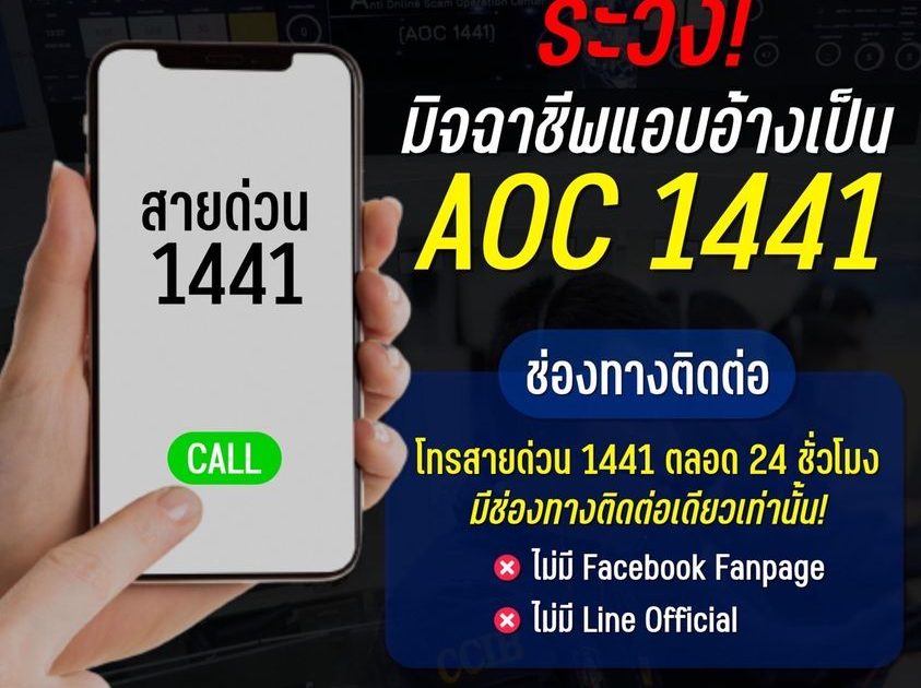 AOC 1441 เป็นศูนย์ One Stop Service จัดตั้งโดยกระทรวงดิจิทัลเพื่อเศรษฐกิจและสังคม เพื่อแก้ปัญหาหลอกลวงออนไลน์สำหรับประชาชน มีการจัดตั้ง War-room เพื่อดำเนินการด้านคดีให้กับประชาชนแบบเร่งด่วน เชิงรุก