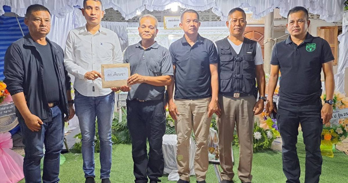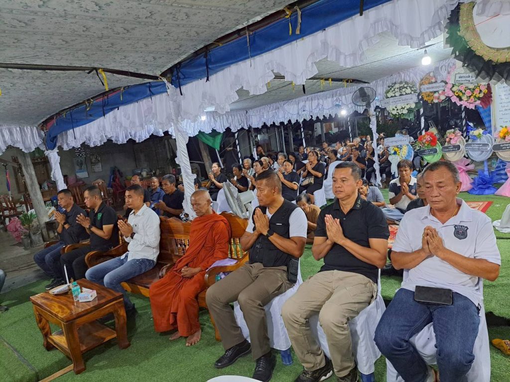 31 มีนาคม 2568 เวลา 19.00 น. พ.ต.อ.อานุภาพ จันดิถวงค์ ผกก.สภ.เคียนซา พร้อมด้วย พ.ต.ท.อนุชิต มีพรมแก้ว รอง ผกก ป.ฯ พ.ต.ท.ปรีชา สมนุ่น สวป.ฯและข้าราชการตำรวจ สภ.เคียนซา วางพวงหรีดและเป็นเจ้าภาพสวดพระอภิธรรมเคารพศพ คุณแม่ออง เพชรช่วย มารดาของ ร.ต.ท.สุพจน์ เพชรช่วย รอง สว.(ป.) สภ.เคียนซา พร้อมมอบเงินสวัสดิการแก่ทายาท ณ บ้านเลขที่ 248 ม.1 ต.กะทูน อ.พิปูน จว.นครศรีธรรมราช