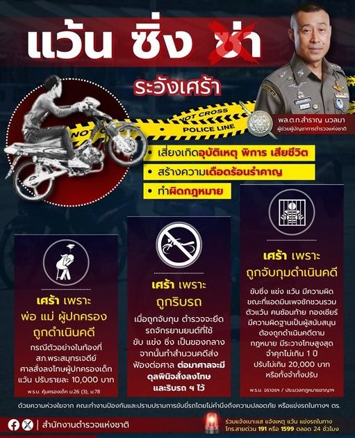 แว้น ซิ่ง ระวังเศร้า! ผู้ช่วย ผบ.ตร. ปราบเด็ดขาด เด็กแว้น รถซิ่ง ป่วนเมือง พร้อมงัด 4 มาตรการ ‘ขับ-ซ้อน-เชียร์-ชักชวน-ผู้ปกครอง’ โดนแน่ รับโทษหนัก คุก ปรับ ริบรถ…
