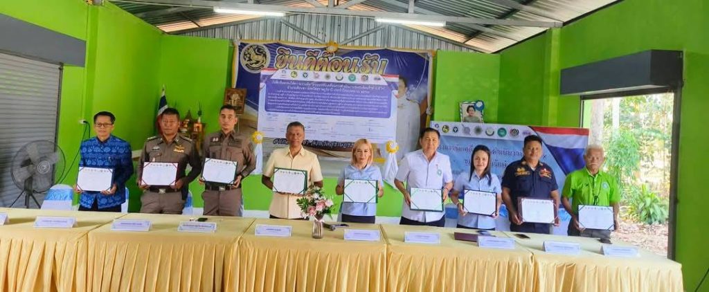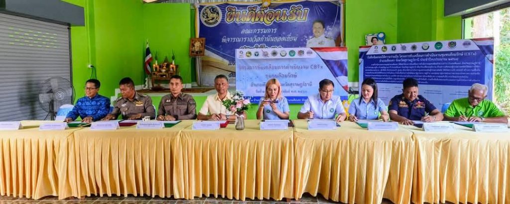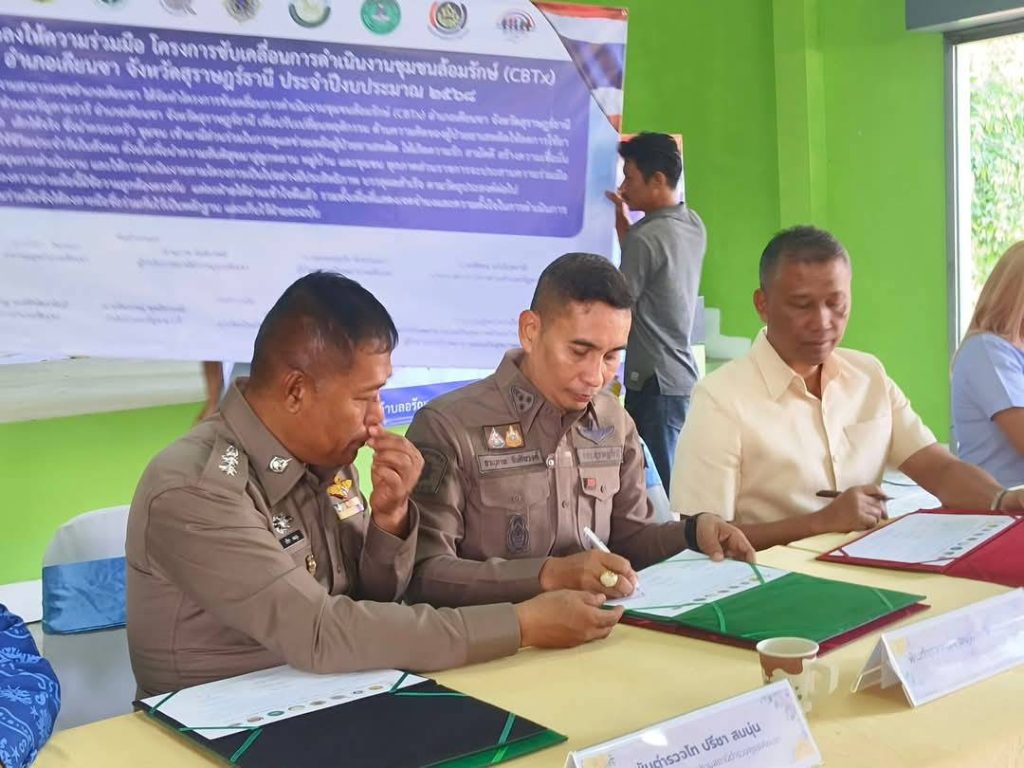 26 ก.พ. 2568 เวลา 09:00 น. พ.ต.อ.อานุภาพ จันดิถวงค์ ผกก.สภ.เคียนซา ร่วมโครงการชุมชนล้อมรักษ์ CBTx โดยมี นายสันติ บุญรอด นายอำเภอเคียนซา เป็นประธานในพิธีเปิดและลงนามบันทึกข้อตกลงกับส่วนราชการและหน่วยงานที่เกี่ยวข้องในการขับเคลื่อนการดำเนินงานโครงการชุมชนล้อมรักษ์ CBTx ณ ศาลาหมู่บ้านกระซุม หมู่ที่ 3 ตำบลอรัญคามวารี อำเภอเคียนซา โดยมีหัวหน้าส่วนราชการ ประกอบด้วยสาธารณสุขอำเภอ ผู้อำนวยการโรงพยาบาล ผู้กำกับการสถานีตำรวจภูธร นายกองค์การบริหารส่วนตำบลและกำนันผู้ใหญ่บ้าน เข้าร่วมกิจกรรม