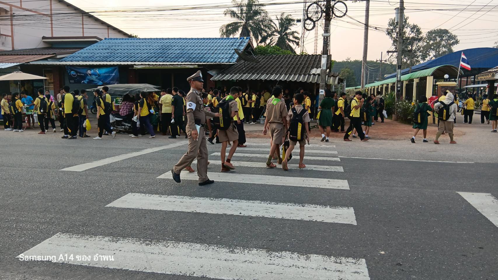 การปฎิบัติ การจราจรคล่องตัว ไม่มีรถติดขัด บริเวณหน้าโรงเรียน