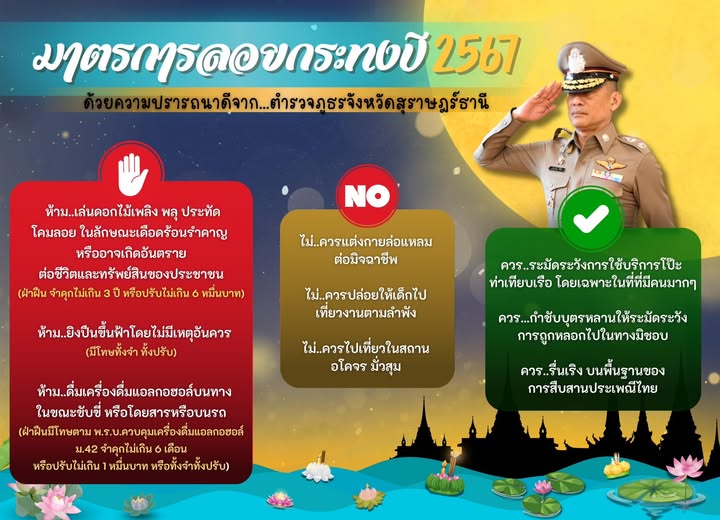 มาตรการลอยกระทง ปี 2567 ด้วยความปราถนาดี จาก #สถานีตำรวจภูธรเคียนซา #ตำรวจภูธรจังหวัดสุราษฎร์ธานี