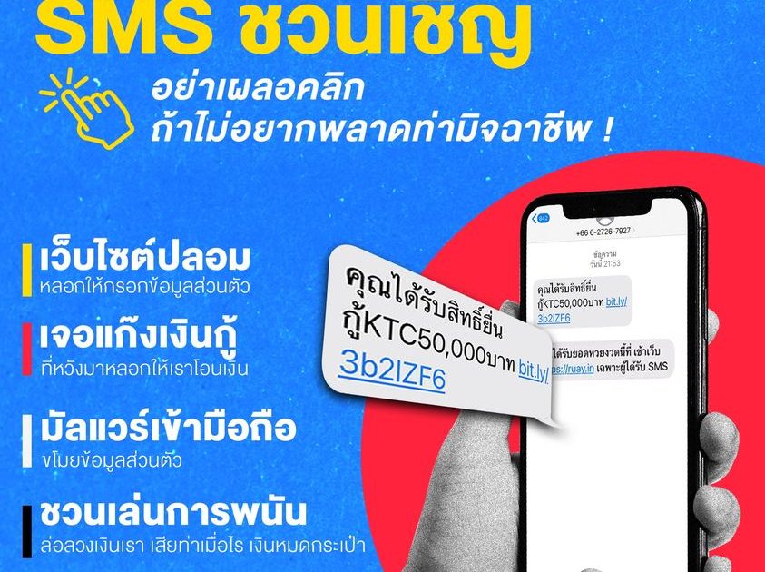 เครือข่ายโทรศัพท์ เป็นอีกหนึ่งช่องทางที่มิจฉาชีพ มักใช้เพื่อหลอกลวงผู้เสียหาย ด้วยข้อความอัตโนมัติ ในเบื้องต้น เมื่อมี SMS เด้งเข้ามา ให้ฉุกคิดและไม่กดลิงก์เข้าไป สามารถช่วยลดโอกาสเสี่ยงที่จะโดนหลอกดูดเงิน หรือขโมยข้อมูลส่วนตัวได้ เพราะลิงก์นั้นอาจจะเป็นต้นเหตุที่จะทำให้ต้องเจอกับเรื่องดังนี้